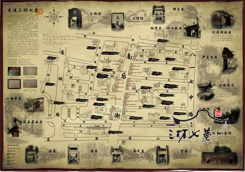 国庆期间,“三坊七巷手绘地图”将正式发行。这张手绘地图,涵盖了三坊七巷的每一条坊巷、每一栋故居、每一处景观。“细致、独到、人性”是它的主要特色。地图里,每一个景点都有插画标注,并配以文字介绍。这份手绘地图还悉心为大家介绍了三坊七巷的历史、名人、建筑、民俗风情及便捷的旅游行车路线。打开这份手绘地图,便可以感受到它带给人们的图画式的质朴美感。