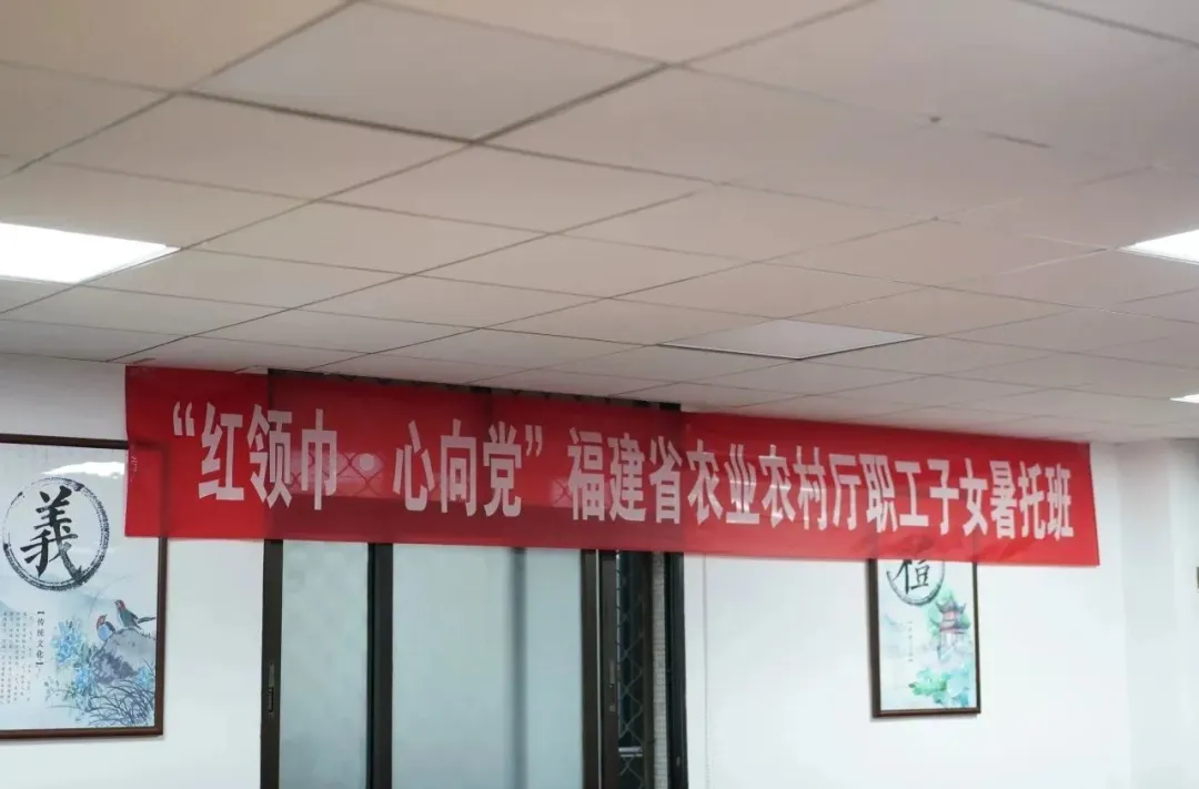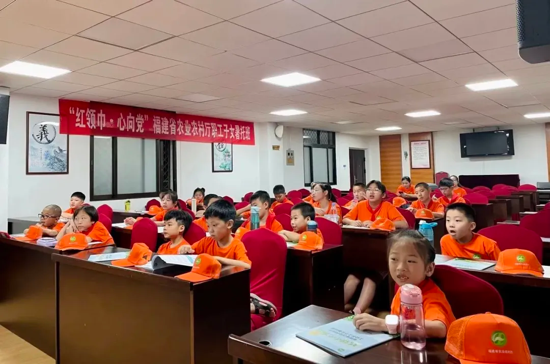 开营仪式上,福建省农业农村厅机关工会主席张小红等莅临现场,同学代表为他们致以少先队礼、佩戴红领巾。