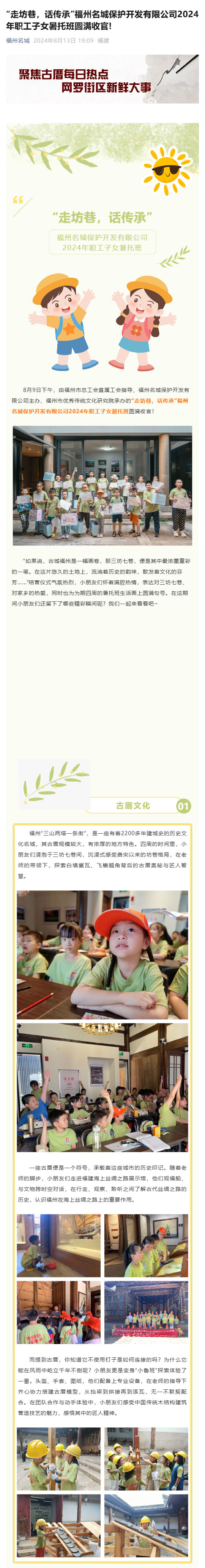“走坊巷,话传承”福州名城保护开发有限公司2024年职工子女暑托班圆满收官!