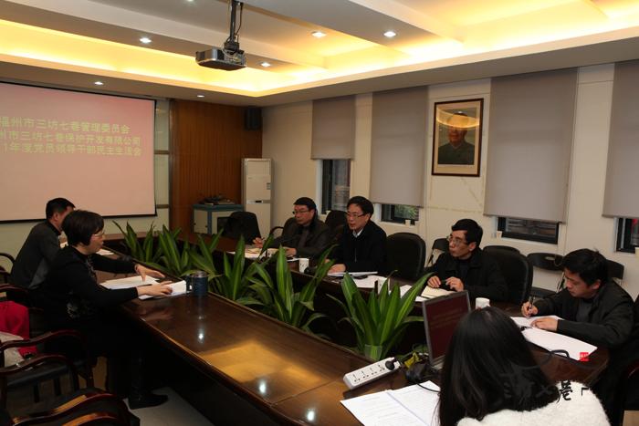 1月10日下午,三坊七巷管委会、公司党支部根据省纪委、省委组织部《关于转发中央纪委、中央组织部〈关于以“坚持以人为本执政为民理念发扬密切联系群众优良作风”为主题开好2011年度县以上党和国家机关党员领导干部民主生活会的通知〉的通知》要求,组织召开了2011年度党员领导干部民主生活会。会议由鼓楼区委书记、三坊七巷管委会主任林飞主持,三坊七巷保护开发有限公司总经理林矗传达了会议精神,管委会领导班子参加了会议。