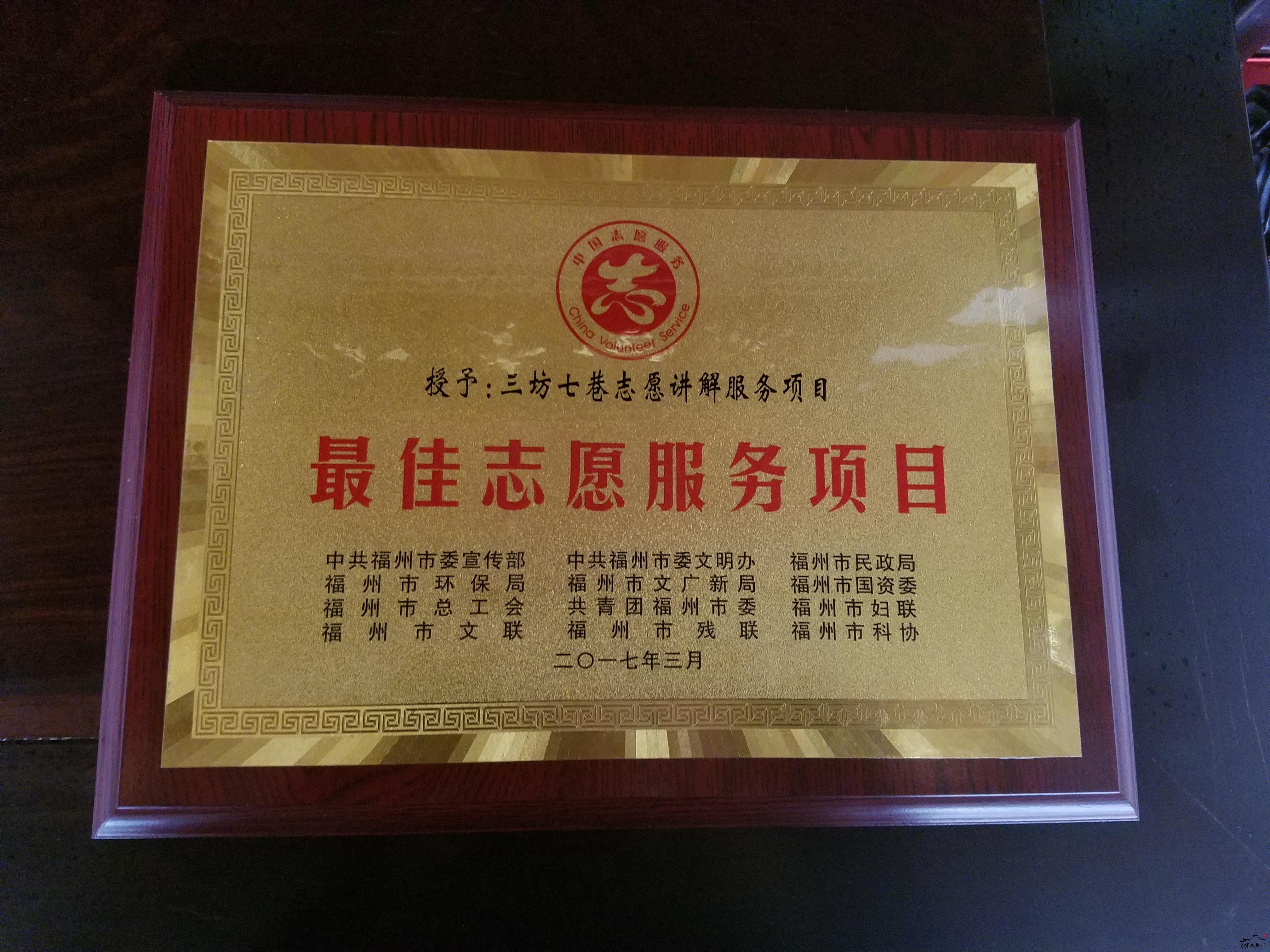 三坊七巷景区志愿者作为鼓楼区30支“有福之州·文明同行”志愿者服务队的一员参加本次活动,并被授予“最佳志愿服务项目”奖。
