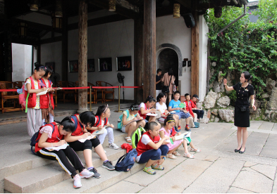 当然,一位合格的小小讲解员,光光会讲是不够的,还要做一位仪态得体的小小讲解员,举止文明的小小讲解员。站姿、坐姿、走姿、指示、引导,一个都不能少;提醒游客爱护景区、保护文物、不在展馆大声喧哗、拍照时不用闪光灯,样样都不得马虎,五天的暑期特训班结束,他们俨然已是三坊七巷有模有样的小小主人翁。