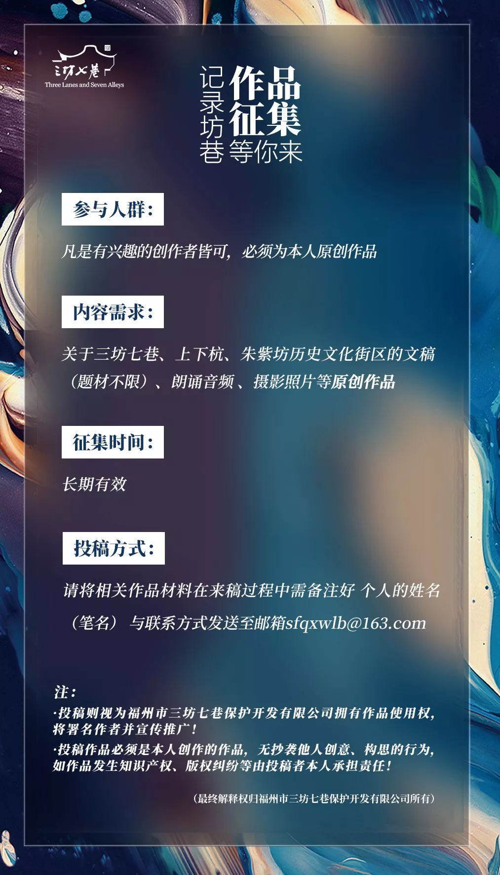 三坊七巷官微开启作品征集!!
