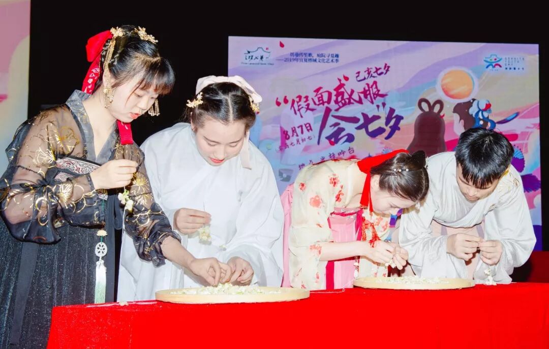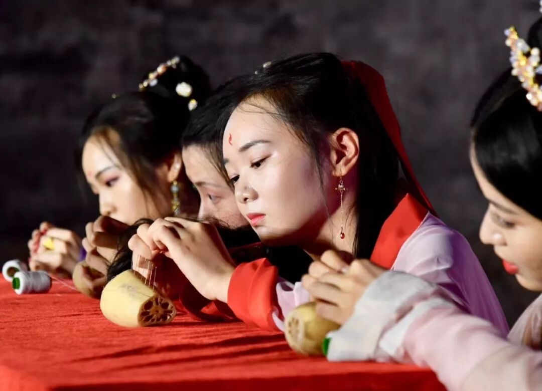 祭星乞巧,是七夕节之于女性最浪漫的节日传统。众多身着汉服华裳的少女们,用向织女星祈求心灵手巧的方式,表达对美好生活的祝愿。