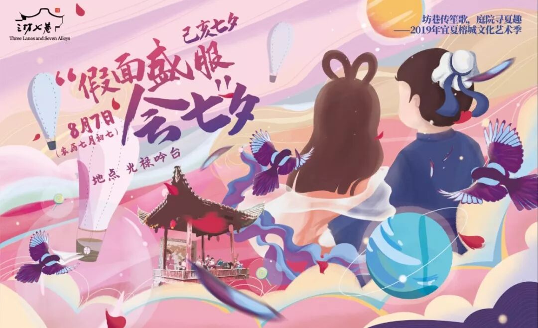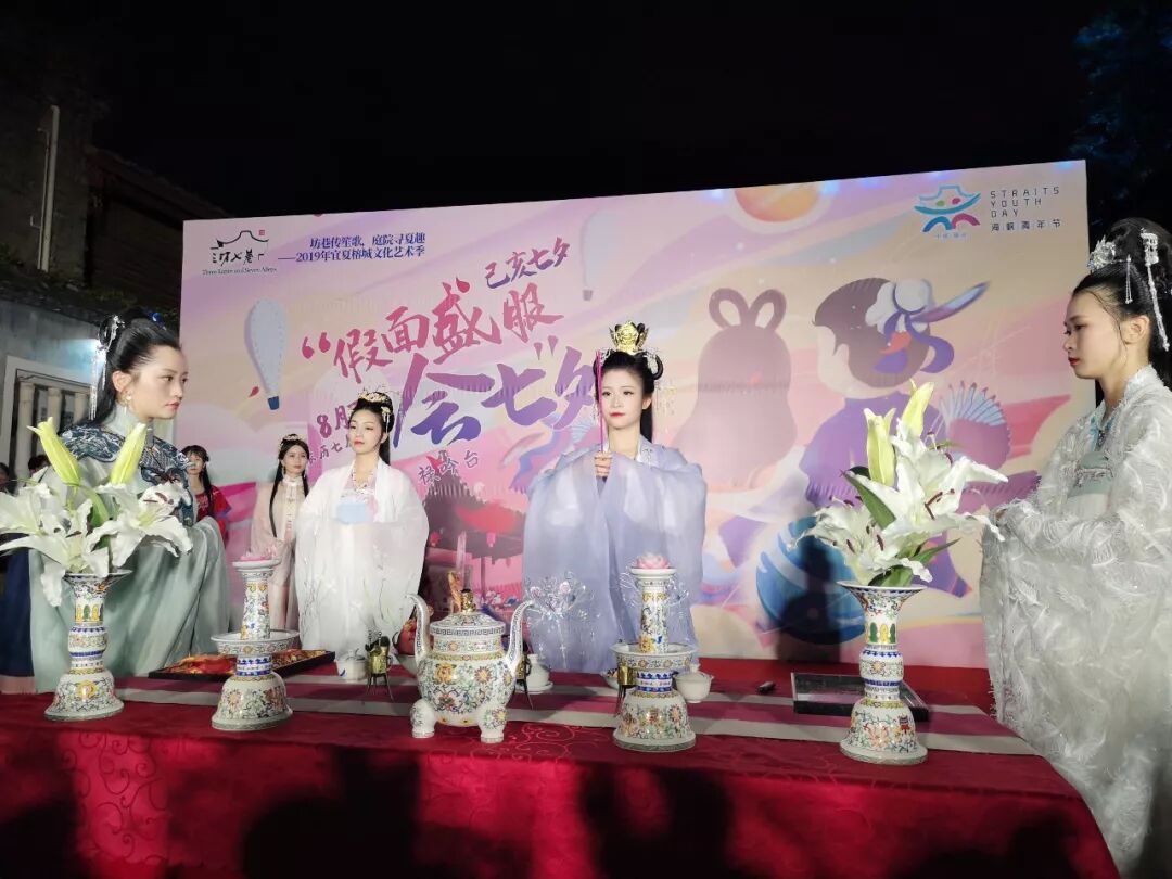 三坊七巷己亥“假面盛服会七夕”主题活动,融合七夕、盛唐、面具、乞巧、坊巷等诸多文化元素,打造海峡青年节与七夕传统节日的碰撞,让古老街区展现出在当代更新更美的一面。