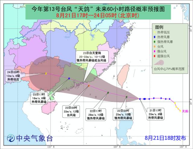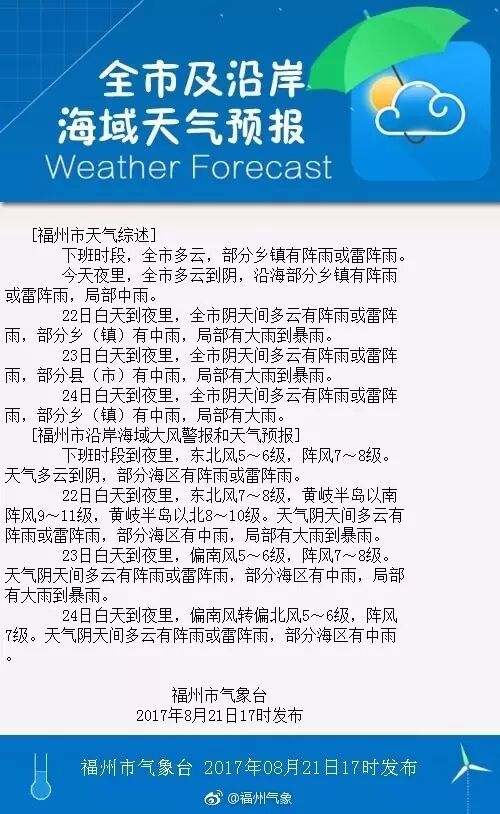 福建省气象台发布“沿海台风警报”和“台风预警Ⅳ级”,并于8月21日22时51分继续发布台风黄色预警信号。