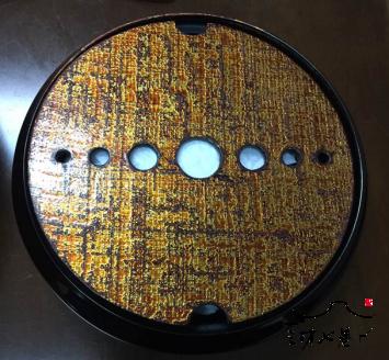 2 | 茶盘 | 240*55(直径*高度) | 使用大漆涂料,胎体为木质,分为底座与台面两部分,主色调为黑色,花纹均根据要求做变涂效果。 | 50 |