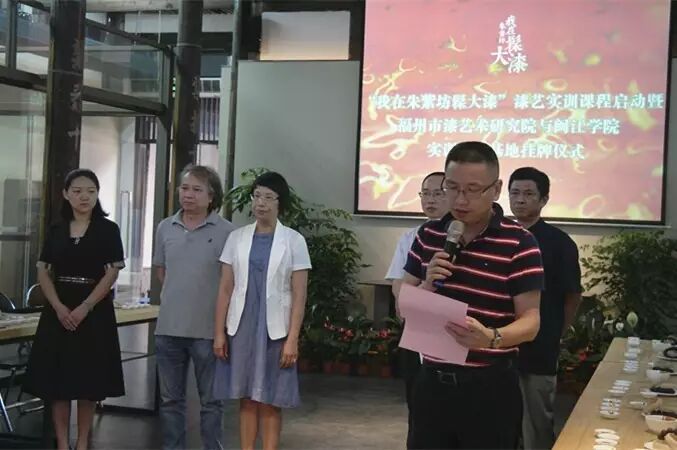 6月29日,“我在朱紫坊髹大漆”漆艺实训课程启动暨福州市漆艺术研究院与闽江学院实训共建基地揭牌仪式在福州市漆艺术研究院朱紫坊33号举行。