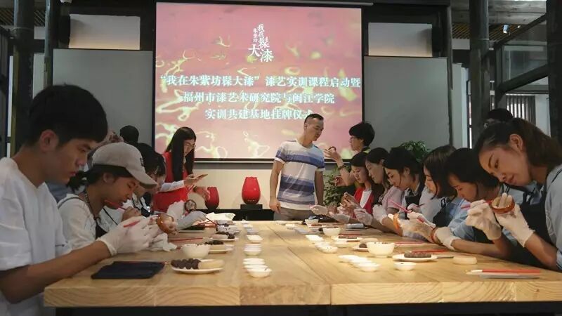 “我在朱紫坊髹大漆”漆艺实训课程启动暨福州市漆艺术研究院与闽江学院实训共建基地揭牌仪式现场