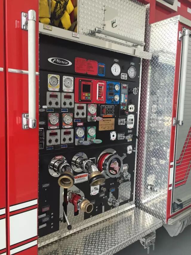 豪士科超高层供水消防车与其它消防车不同,最显要的标志就是在其左侧有一个装有很多的仪表装置和按钮一个外置操作板,它的一切实际操作动作都要从这个中枢系统发出。另外,豪士科超高层供水消防车顶部的水炮如同全景摄像头可以360度自由旋转。