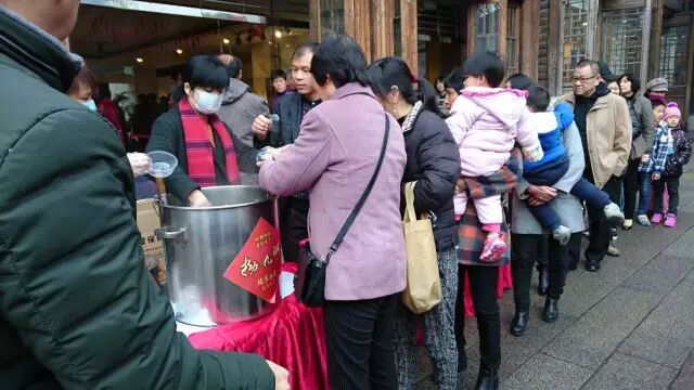 市民朋友排队领取拗九粥