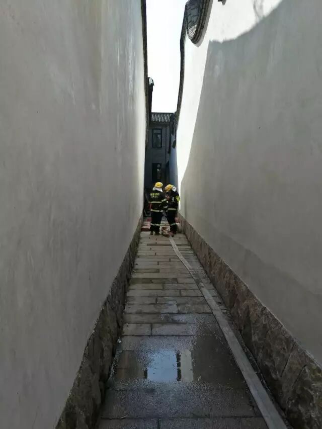 消防水枪进入坊巷。