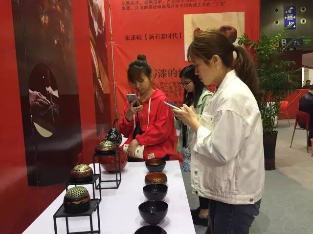 市民们被美丽的漆艺产品吸引,纷纷拍照留念。