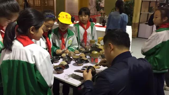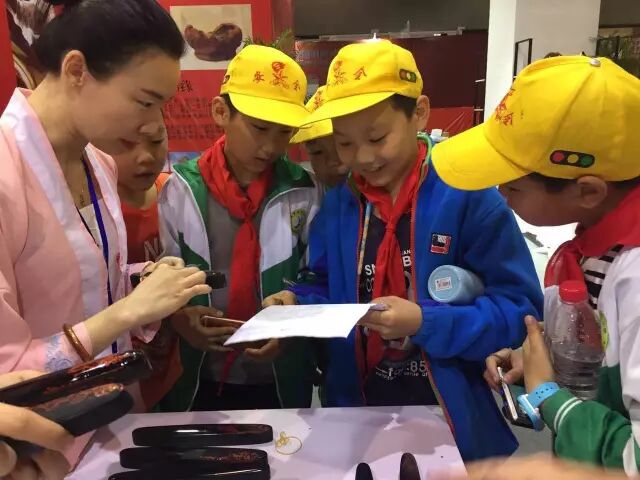 现场还有小记者采访询问福州市漆艺术研究院的参展人员,了解漆艺制作过程,漆艺知识学习从小抓起!