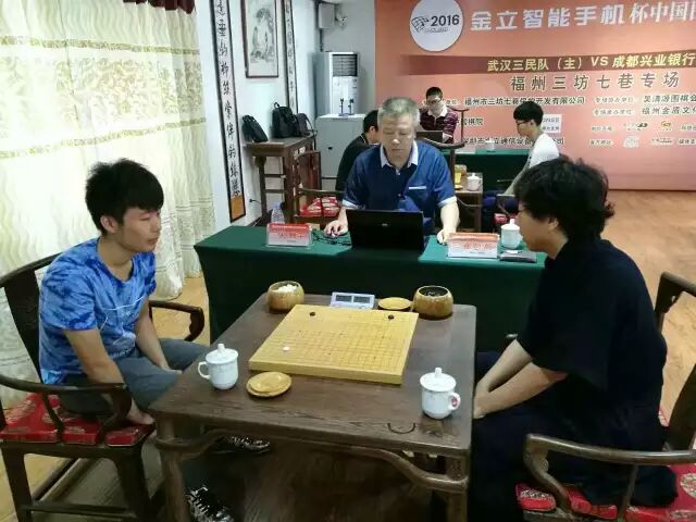 经过一天的博弈,最终“2016中国围棋甲级联赛福州三坊七巷专场”武汉三民队3比1战胜客队成都兴业银行队。武汉三民鸿运当头,三盘赢棋均为半目险胜。主将战 ,韩国外援李东勋七段半目胜古灵益五段;胡跃峰五段半目胜党毅飞五段;辜梓豪四段半目胜廖元赫二段。武汉三民队唯一的败局是孙腾宇七段中盘不敌韩国外援崔哲瀚九段。