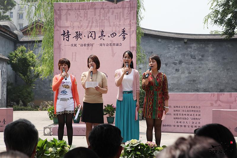 “烟雨重重 街与坊错落层叠 在初春的眸间 被圈圈渲染 款款盈动成诗……”29日,诗歌闪亮四季--庆祝“诗歌快闪”一周年诗歌朗诵会在三坊七巷举行。
