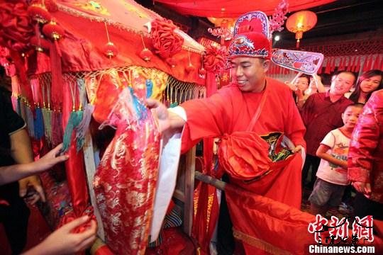 花轿迎亲 福州新人婚礼玩“复古”