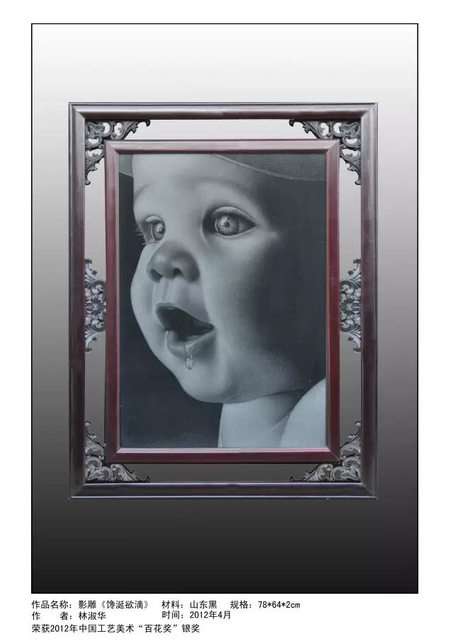 本次展出的惠安影雕,被誉为“中华一绝”,是惠安石雕中最为出色的雕刻形式之一,其雕琢必须心细且手巧,是特别符合女性从事的石雕工艺。影雕,顾名思义其雕刻形象逼真,犹如摄影;它是以明末清初惠安石雕出现的“针黑白”工艺为基础发展创新的一种新工艺,在磨平的深色石板上,用粗细不同的各种微型钢钎,靠着铅点的大小、深浅、粗细、疏密和虚实的有机结合,精心雕琢,相应成像;它不仅能充分的表现出原作的真实意境,而且能通过石雕独特的艺术风格,使祖国的名山大川、英雄人物,乃至世界各国的珍闻异事,尽现在这小小的青石画面上。其雕琢的画面无不纤细入微,超尘脱俗。