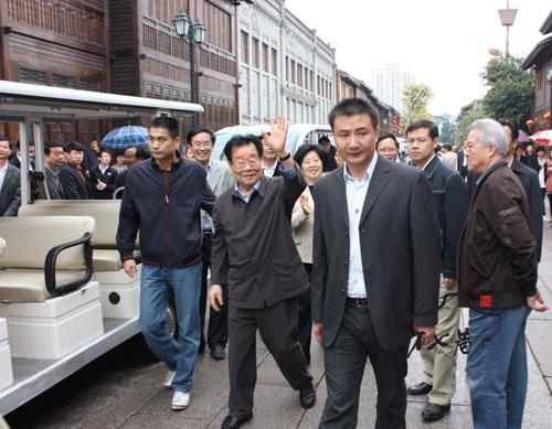 原中共中央政治局常委、全国政协主席李瑞环一行在福建省省委书记孙春兰、福建省副省长,福州市市长苏增添等省、市领导陪同下,兴致勃勃地来到三坊七巷寿山石雕刻馆、福建省非物质文化遗产博览苑(叶氏民居)参观。 参观过程中,李瑞环同志认真聆听了讲解员介绍福州城垣的变化、三坊七巷的历史变迁情况,神情专注,不时地仔细端详展览并提出关心的问题,流露出对福州2200年建城史的浓厚兴趣。