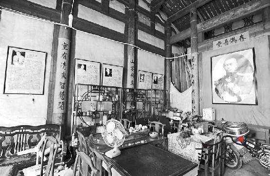 在萨氏后人老刘的引领下,记者首先来到一进厅堂,房屋内部装饰、雕刻虽然有些陈旧,但仍然可以一眼看出大宅当年的华美和气派。大厅正中萨镇冰一身戎装的大幅像片上,萨镇冰炯炯有神的目光似乎在注视着来访者。