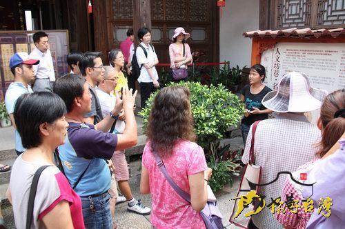 客家鄉情聯播網聽友聯誼活動在福建成功舉辦。圖為兩岸客家聽友在黃花崗七十二烈士之一林覺民故居簡介前,認真聆聽導遊講解。
