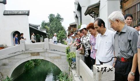 百名劳模观看治理后的安泰河,对优美的环境赞叹不绝
