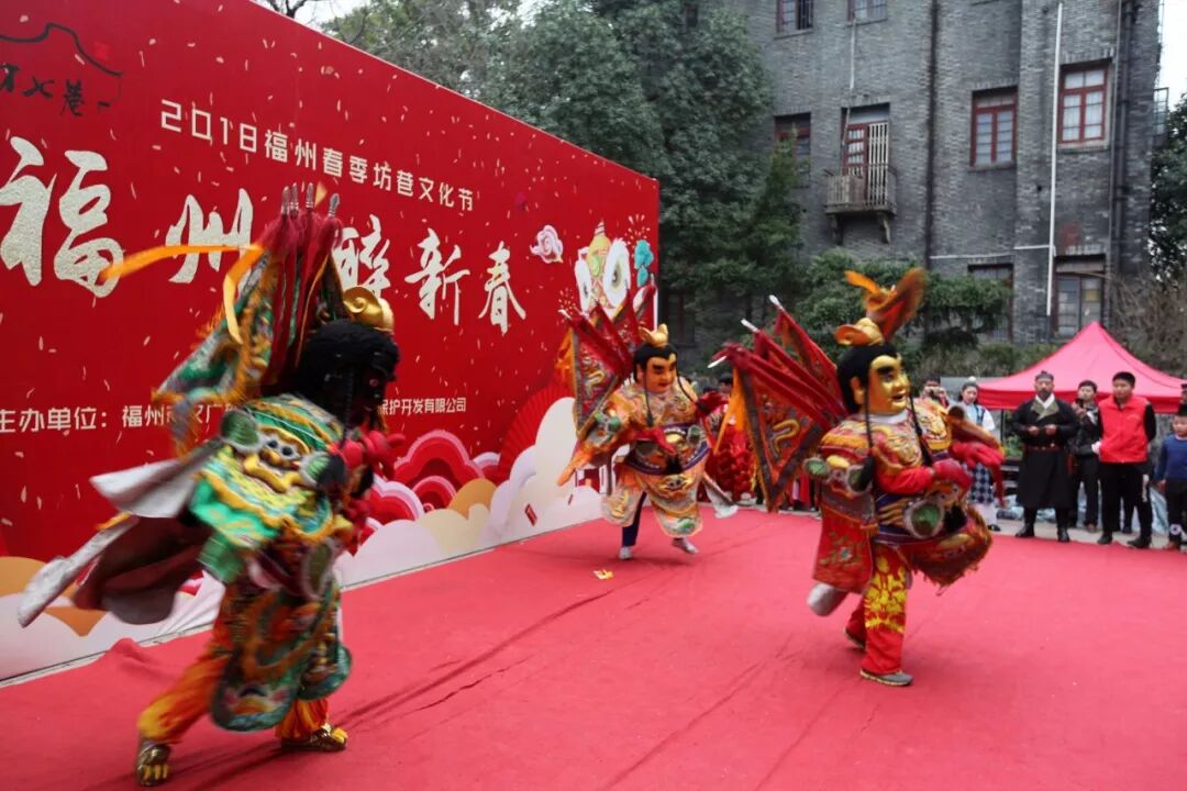 福州三坊七巷天后宫的迎财神民俗表演队伍在三坊七巷迎接财神神架,展现了来自台湾的传统接香仪式,为“正月初五迎财神”传统春节民俗巡游拉开了序幕。