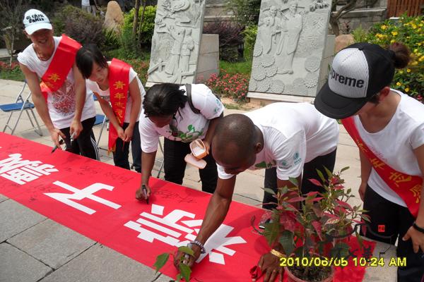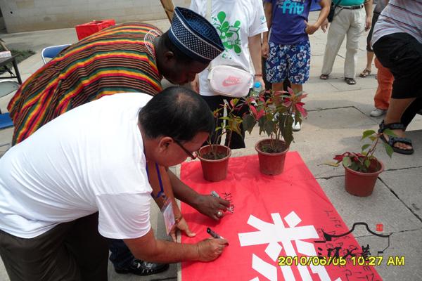 来自加纳的游客在长布签名留念