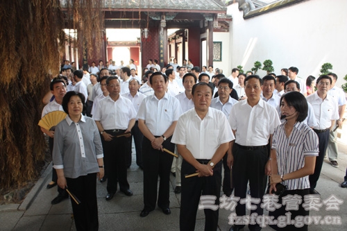 8月17日下午,江西省党政代表团一行70余人参观考察福州三坊七巷历史文化街区。江西省省委书记苏荣、省长吴新雄和福建省委书记孙春兰、省长黄小晶一同参观了三坊七巷林则徐纪念馆、二梅书屋(福建民俗博物馆)和水榭戏台。省领导梁绮萍、于广洲、张昌平、袁荣祥、唐国忠、杨岳、王美香、苏增添、叶家松等陪同考察。苏荣书记和吴新雄省长详细了解了三坊七巷的保护修复和文化旅游工作的开展情况。对福州市在保护传承历史文化做大做强文化旅游品牌、积极建设文化强市等方面的做法,苏荣书记和吴新雄省长都给予了充分肯定。