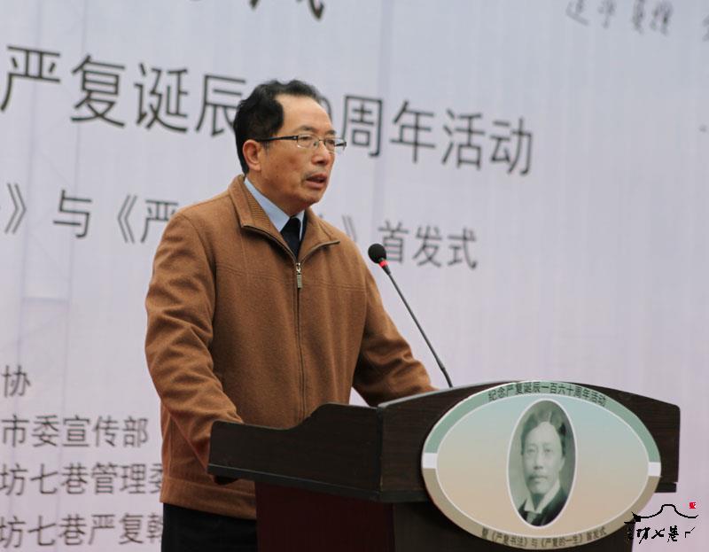 严复是福州籍的杰出人物,是中国近代著名的启蒙思想家、教育家、翻译家。他出生于福州市仓山区盖山镇阳歧村,晚年定居三坊七巷郎官巷20号。他热爱国家,坚持科学思想,勇于追求真理,为“开民智、鼓民力、新民德”进行了不懈努力。严复翻译了《天演论》、《原富》、《法意》、《群学肄言》、《社会通诠》等西方一批学术名著,把西方政治思想介绍到国内,是将西学传入近代中国的先驱。同时,他撰写了《论世变之亟》、《原强》、《救亡决论》和《辟韩》等震动一时的政论文章。毛泽东曾评价严复等人是“代表了在中国共产党出世以前向西方国家寻找真理的一派人物”,称严复是一个“先进的中国人”。严复秉持教育救国理念,大半辈子坚持在教育岗位上,尤其是创建、保全和发展了北京大学,为国家的教育事业立下了不朽功勋。纵观严复一生,他心系祖国前途,忧国忧民,著书立说,教育救国,为挽救祖国危亡奔走呼号。习近平总书记曾在1997年福建省召开的“严复与中国近代化学术研讨会”上为严复题词“严谨治学,首倡变革,追求真理,爱国兴邦”,为严复一生作出了中肯的评价。严复为我们留下了丰富的精神财富,今天纪念严复,就是要学习和发扬他爱国精神和科学思想,为实现中华民族伟大复兴的中国梦而努力奋斗。
