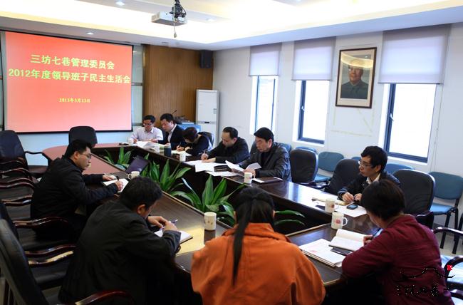 3月13日上午,三坊七巷管委会、公司召开以“保持党的纯洁性,永葆党的先进性,大力加强领导班子思想政治建设”为主题的2012年度领导干部民主生活会。会议由三坊七巷保护开发有限公司、党组书记林矗主持,管委会领导班子成员参加了会议。