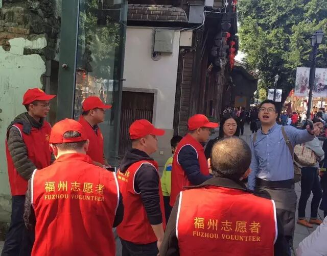 当天下午,福州市委文明办与三坊七巷保护开发有限公司在三坊七巷景区联合开展了学雷锋志愿服务活动。多名志愿者在三坊七巷景区内为游客提供志愿服务。