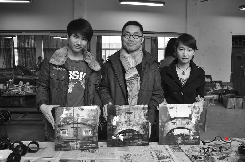 昨日,福州旅游职业中专学生正在创作漆画《把三坊七巷带回家》。