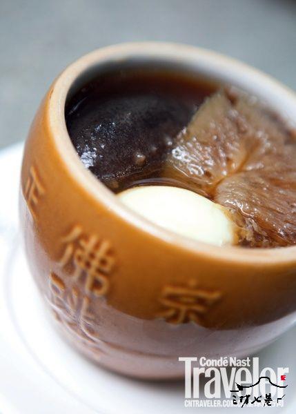 至于“佛跳墙”就不是碱水面包可以比喻的了,它就是莎士比亚本尊。关于“佛跳墙”的来历和传说想必已人尽皆知,无论故事如何,无非想突出这道菜异于常物。“佛跳墙”一菜的原料和制作工序令人眼花缭乱,工序烦琐而又布阵堂堂。这是一道家庭主妇难以炮制的菜,如果想要从容地享用这人间奇味,还需去各大食肆。