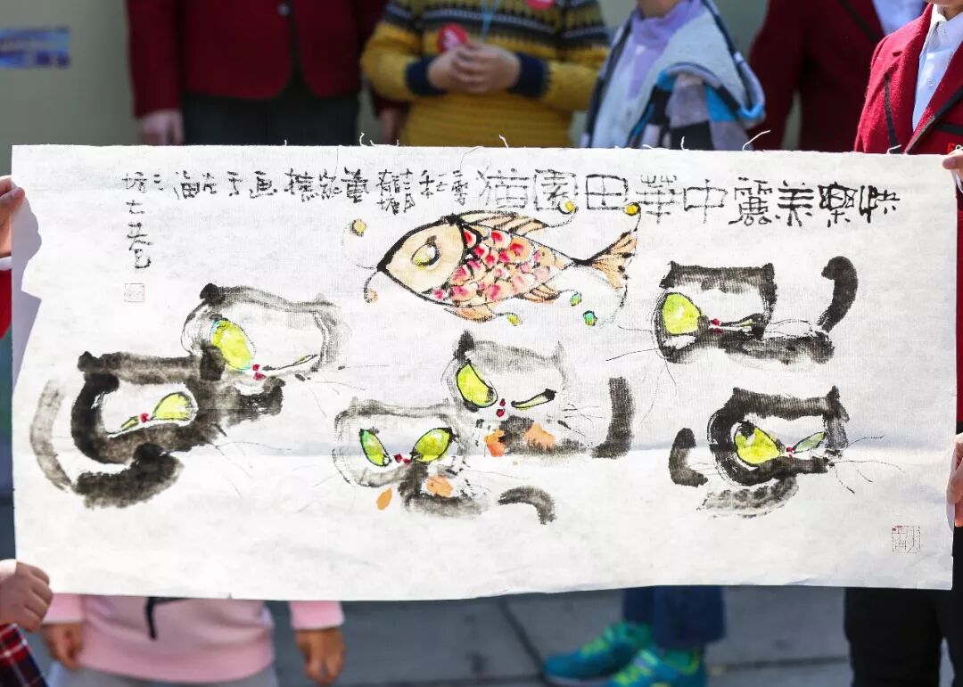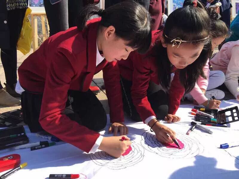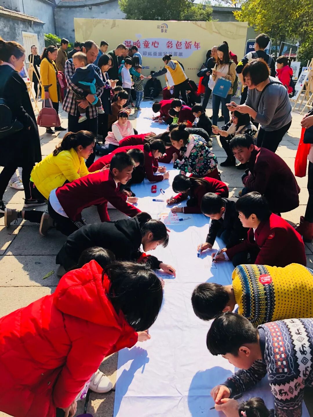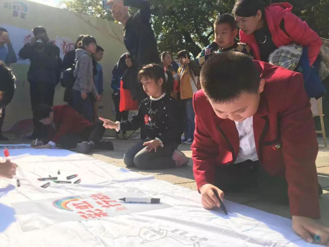 活动现场还准备了“百米长卷”,让孩子与大人们一同书画美丽“彩虹”。