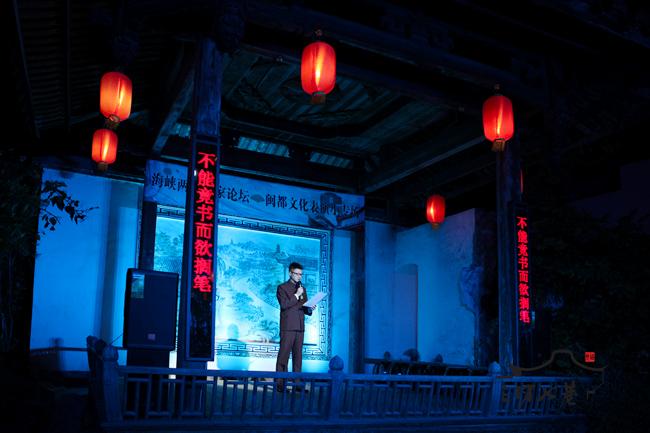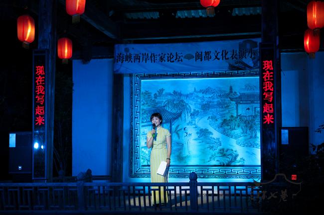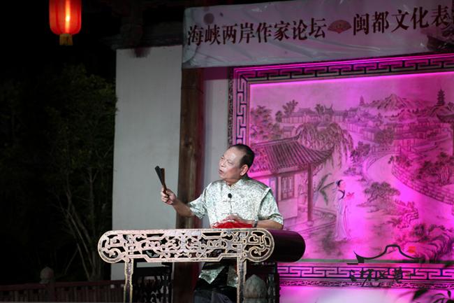 为丰富本次论坛内容,充分展示福州地方文化,28日晚,由三坊七巷管委会与省文联共同承办的地方艺术欣赏晚会在水榭戏台举行,晚会表演了福州的评话尺唱 、诗朗诵《与妻书》、《我的故乡》等精彩的节目,来自台湾的郑愁予、陈若曦、亮轩、吕正惠、龚鹏程和来自大陆的刘登翰、傅溪鹏、赵玫、项小米、阎晶明等知名作家、评论家观看了表演。