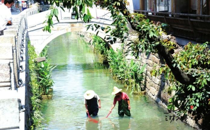 “他们拿着扫帚站在水里干什么呢?”昨天上午,记者看见四位工人站在安泰河澳门桥边的河底条石上,每人手拿一把家用扫帚,在河里“扫地”,这场景也让不少市民感到纳闷。“我确实在扫地。”一位工人解释说。只见他把扫帚伸进齐膝深的水里,刮着河底。“我见过好几次了,水里扫地,闻所未闻,这也太怪了。”一位市民不解地说。