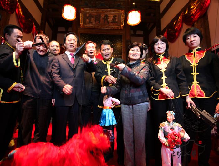 文化部副部长王文章,省委常委、副省长陈桦等领导观看木偶表演