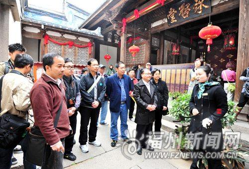 14日一大早,三坊七巷就迎来了50名拿着“长枪短炮”的游客,他们是闽港旅游业者海西旅游采风团的团员,由香港《大公报》《商报》《亚洲旅游》杂志等10家主流媒体以及我省主要的旅行社、媒体代表组成。