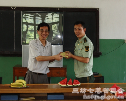 7月30日上午,三坊七巷管委会副主任叶子文到三坊七巷消防中队,向辛勤值守在工作岗位的消防官兵致以亲切的慰问和节日的祝贺,并送上慰问金。 他对消防官兵工作给予了充分的肯定和高度的评价,并希望他们在坚守岗位注意防暑降温,更好地保卫经济社会发展和人民生命财产安全。
