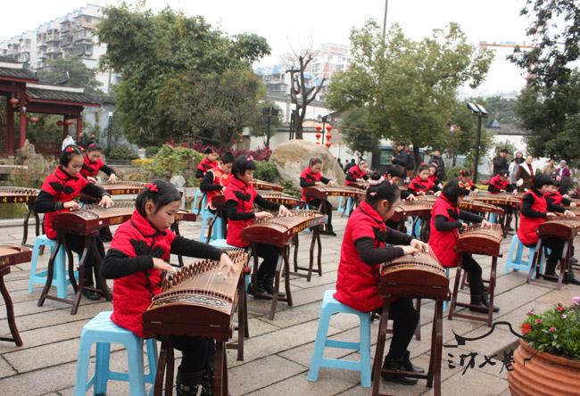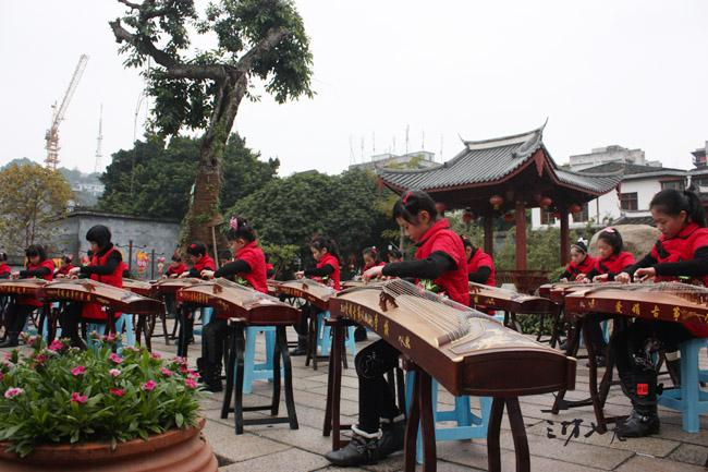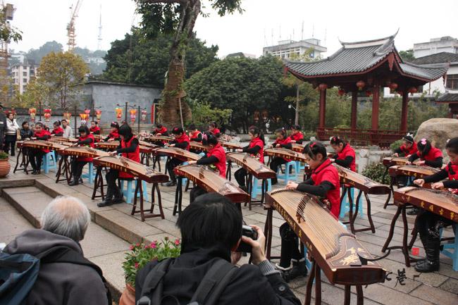 1月24日上午,三坊七巷光禄呤台,悠扬的《山丹丹花开红艳》古筝合奏声响起,奏响了中国风浓郁的旋律,丝竹声声给市民游客带来愉悦的享受,引领大家畅想到国泰民安的美好生活,庆祝新春的到来。