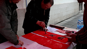 “手写的春联就是不一样,看书法家那一笔一画,多有气势!”