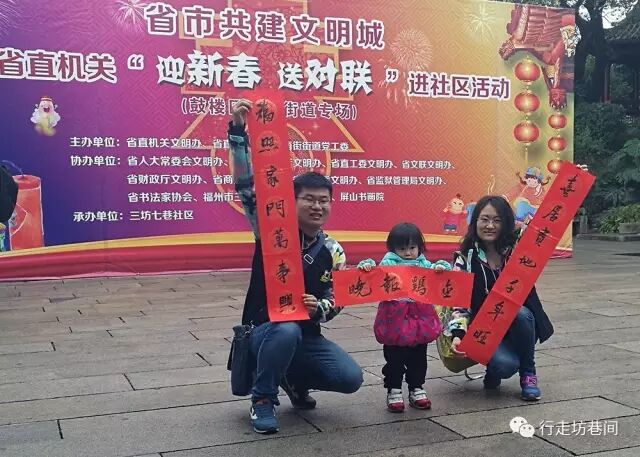 这场在三坊七巷光禄吟台,由省直机关文明办、省直机关工会、南街街道党工委主办,鼓楼区南街街道三坊七巷社区承办的“迎新春 送对联”进社区活动,让大家切实感受到我国的传统文化和浓浓的节日气息。