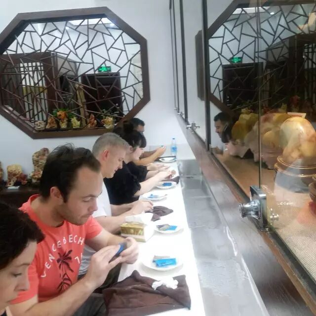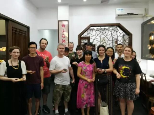 游学团来到三坊七巷南后街的百宴轩,不仅在这里看到了大世界吉尼斯之最——“不重样菜肴食材数量之最”的寿山石“满汉全席”,了解到被誉为中国国石瑰宝——寿山石的品种,还饶有兴致地卷起袖子,跟着雕刻师叶秦学起了寿山石打磨。当经过亲手打磨的寿山石展现出自然的纹路和独特韵味的时候,墨尔本游学团的学生与老师们都兴奋不已。