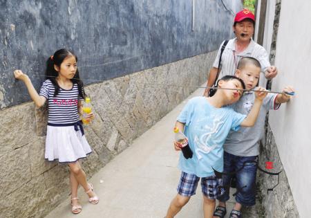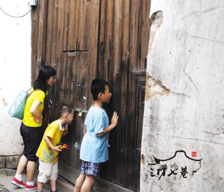 ②在早题巷《与妻书》发生地,孩子们透过门缝,好奇地向里张望着