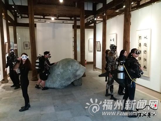 昨日9时许,一群潜水爱好者带着装备来到文儒坊抱云山房,换好光亮的潜水服,戴上潜水面罩,并将压缩空气罐背负身上,或在太师椅上闲坐,或在书画前赏读,或在巨石旁闲聊,抑或坐在门槛上深思回味。冬雨下个不停,一群潜水爱好者就这样“潜入”三坊七巷的古建筑,古朴与时尚在这里碰撞。