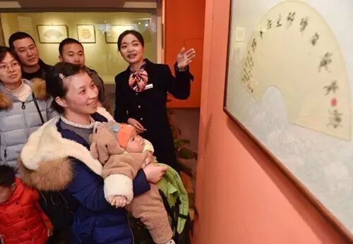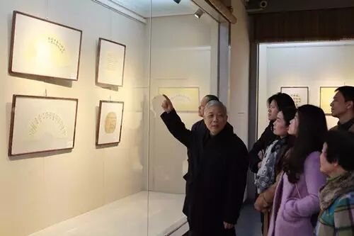 游客们在了解一幅书法扇面作品