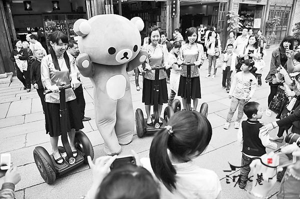 传统手工技艺、越剧表演、十番音乐演奏,精彩的传统节目在南后街轮番上演,吸引众多游客驻足。脚踏“风火轮”的“坊巷骑兵”更成为南后街一道独特的风景。有关人士告诉记者,在劳动节和青年节即将到来之际,他们特意安排“坊巷骑兵”身着“五一工装”和“五四学生装”,让市民感觉更炫。