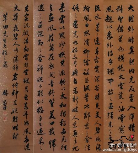 林则徐《书法四屏》--- 林则徐书法功底很深,有清劲秀博之风,其书法无矫揉造作,笔墨轻重随意,或错落有致,或倚侧生姿,柔中含刚,宽博疏朗,一如人品。