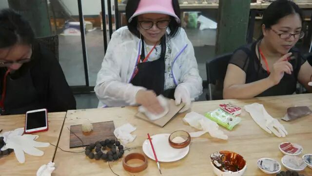 学员们在老师和助教的指导下,细心地打磨、涂漆。这认真的劲儿,小编看着都忍不住点赞。